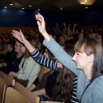 Z uwagi na tak liczne przybyłą grupę spotkanie przebiegało w II turach. W każdej z nich odwiedzający nas uczniowie wysłuchali krótkiego, interdyscyplinarnego wykładu z zakresu nauk ścisłych, spotkali się ze studentami, przedstawicielami kierunków Wydziału, wzięli czynny udział w ciekawych i pouczających pokazach doświadczeń w pracowniach instytutów: Chemii, Matematyki i Fizyki oraz Informatyki. Na pamiątkę udziału w „wagarach” wszystkie uczestniczące klasy otrzymały „certyfikaty wagarowicza” sygnowane przez Panią Dziekan.