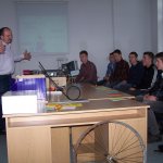 Drugi wykład pt. "Od Algebry Boole’a do komputerów” wygłosił Pan dr Marek Siłuszyk z Instytutu Matematyki i Fizyki. Wykład miał na celu pokazanie uczniom, że zbiór dwuwartościowy złożony z {0, 1} jest podstawą całej obecnej INFORMATYKI. Nic nie jesteśmy w stanie zrobić bez znajomości systemu binarnego (dwójkowego), który nie tylko jest systemem liczbowym, ale pełni funkcję alfabetu stosowanego przez komputery do cyfrowego opisu i odwzorowania rzeczywistości. Głównym osiągnięciem Georgia Boole’a było wprowadzenie do matematyki i logiki pojęcia algebry dwuwartościowej zwanej później od nazwiska twórcy algebrą Boole'a. Ze względu na wagę tego pojęcia oraz jego zastosowań w informatyce i matematyce, a dokładniej w logice matematycznej autor jest uważany za jednego z twórców tych dziedzin nauki. Na wykładzie pokazano, że pewne określenia, o których mówi się na Matematyce, Fizyce i Informatyce są wspólne, czasami język/terminologia jest specjalistyczna ale treść jest niezmienna. Ten fakt łączenia przedmiotów ścisłych jest bardzo ciekawy i niezbędny w procesie edukacji.