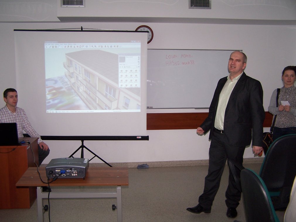 Spotkanie w pracowniach Instytutu Informatyki prowadzili: dr Andrzej Salamończyk, dr Grzegorz Terlikowski oraz studenci informatyki Tomasz Kociołek i Mateusz Młynarczyk. W ramach prezentacji kierunku Informatyka uczniowie sterowali robotami mobilnymi Pioneer 3-DX. Ponadto zapoznali się z aktualnym projektami realizowanym między innymi przez studentów w Instytucie Informatyki UPH dotyczącymi platformy elektronicznych rynków usług i możliwości wirtualnego spaceru po Siedlcach w trójwymiarowym środowisku symulacyjnym. W ramach warsztatów można było zapoznać się z narzędziami do modelowania trójwymiarowych obiektów. Spotkanie było też okazją do zaprezentowania działalności studenckiego koła naukowego Genbit, organizatora konferencji Inżynieria Gier Komputerowych, której najbliższa jubileuszowa edycja odbędzie się w dniach 5-7 kwietnia 2013 r.