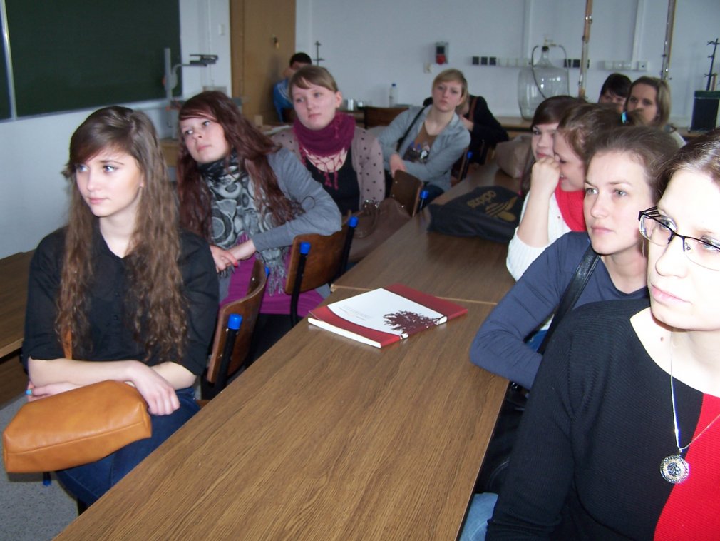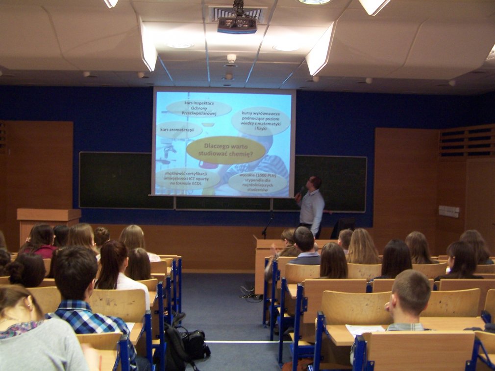 Następnie studenci: Michał Soszyński (Chemia), Konrad Brzóska (Informatyka) oraz Izabela Świderska (Matematyki) opowiedzieli o kierunkach na których studiują, oraz zachęcali do podjęcia studiów na tych kierunkach, następnie zaprosili studentów do odwiedzenia pracowni laboratoryjnych.