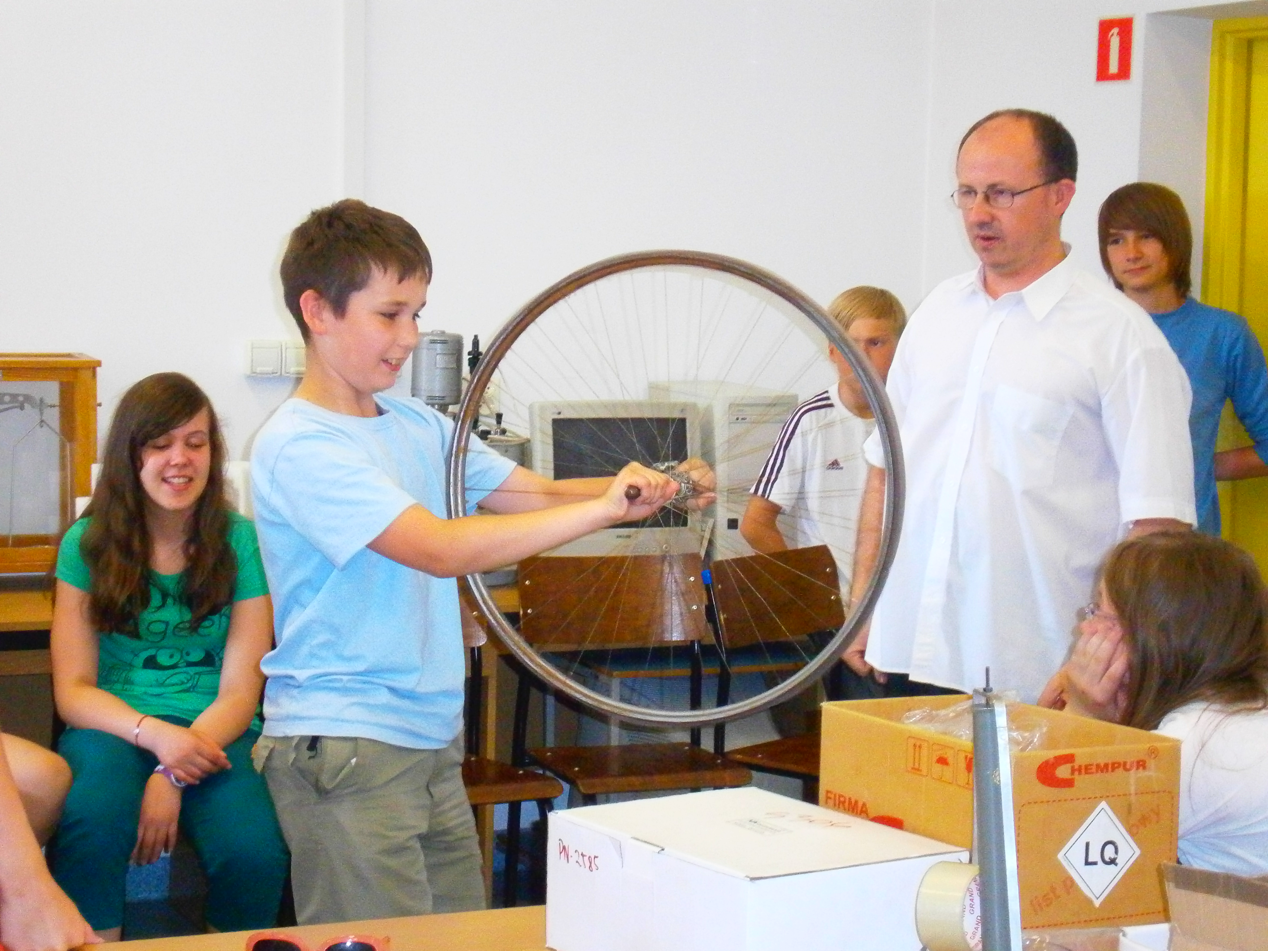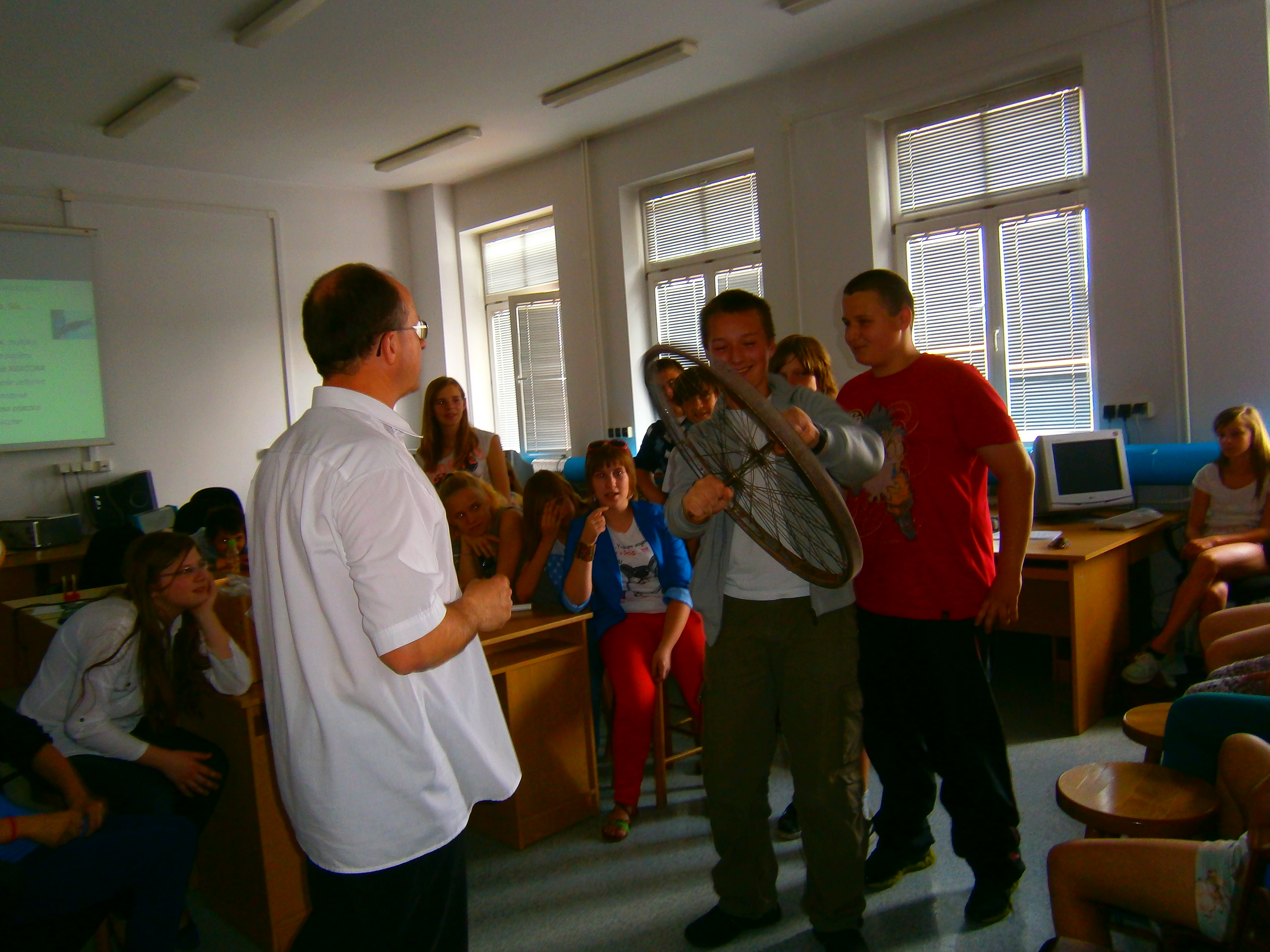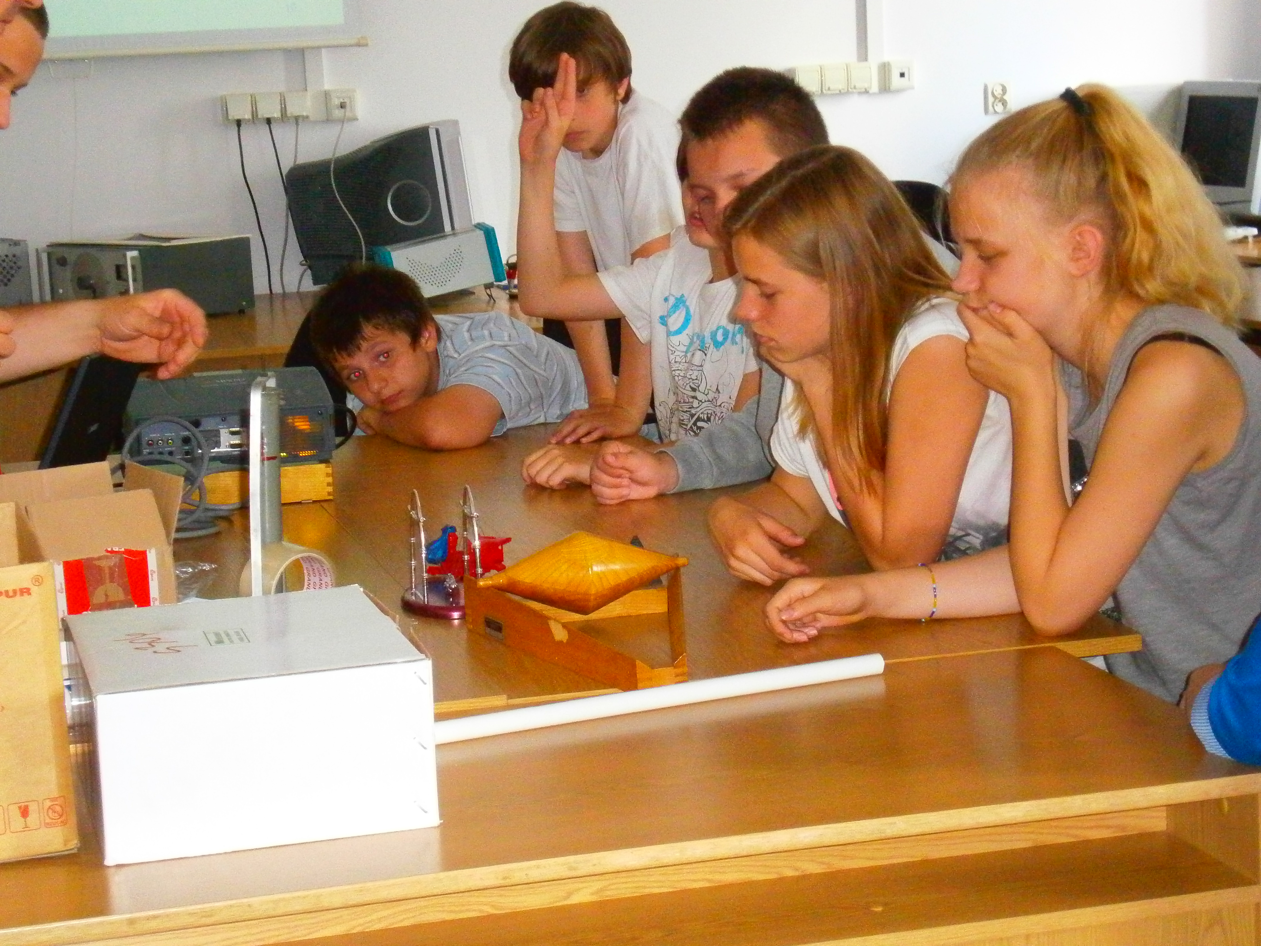 W dniu 14.06.2013 w godz. 12:00 - 14:00 prowadził warsztaty dla uczniów oraz oprowadzał po laboratoriach fizycznych pan dr Marek Siłuszyk - nie oceniony popularyzator fizyki i matematyki. Nawet proste doświadczenia oraz właściwa forma zajęć dostosowana do wieku i wiedzy uczniów cieszyły się olbrzymim zaciekawieniem. Dwugodzinne spotkanie nie zdążyło znudzić ambitnych, młodych ludzi. Mamy nadzieję, że część z nich to przyszli nasi studenci.