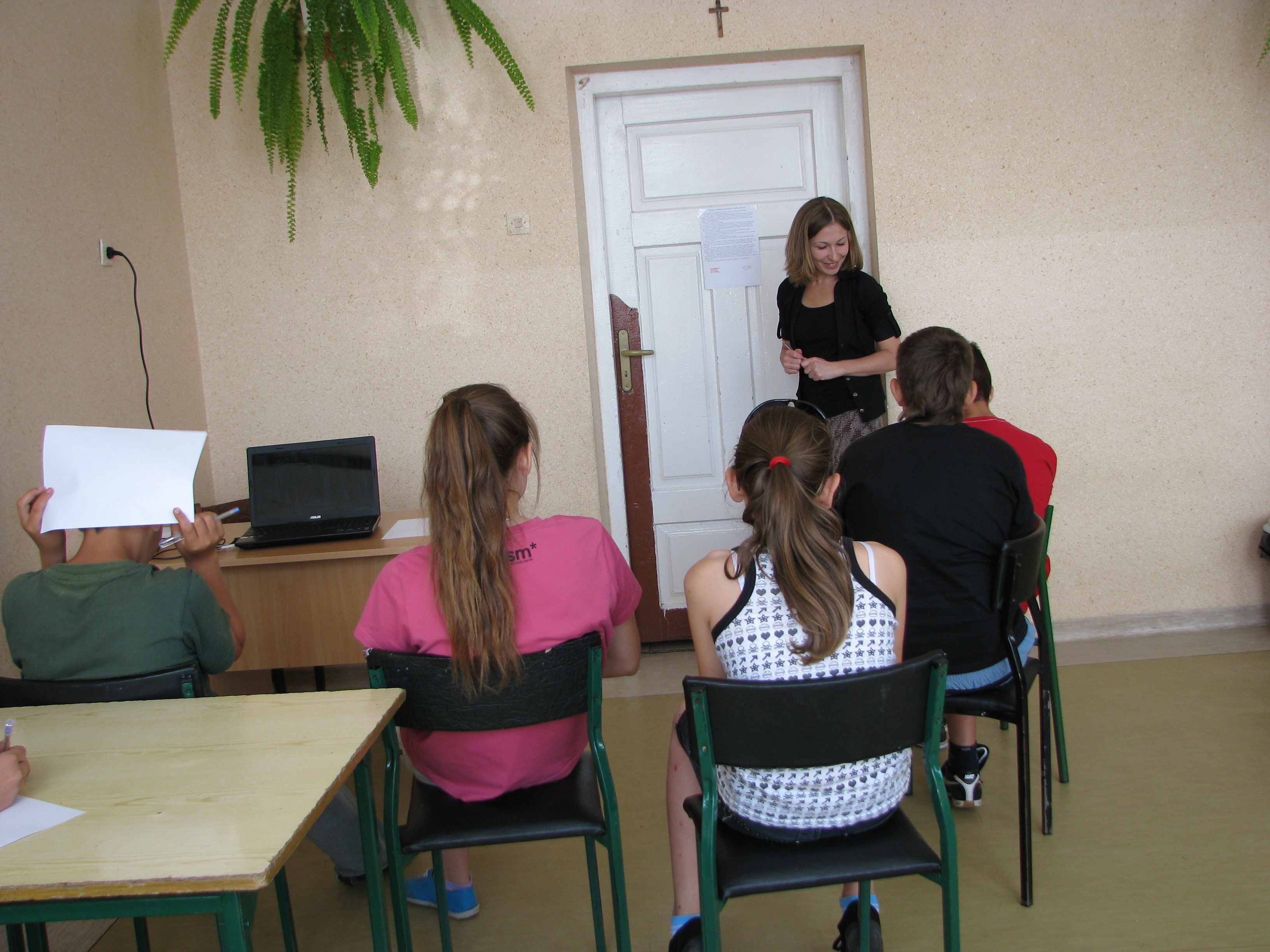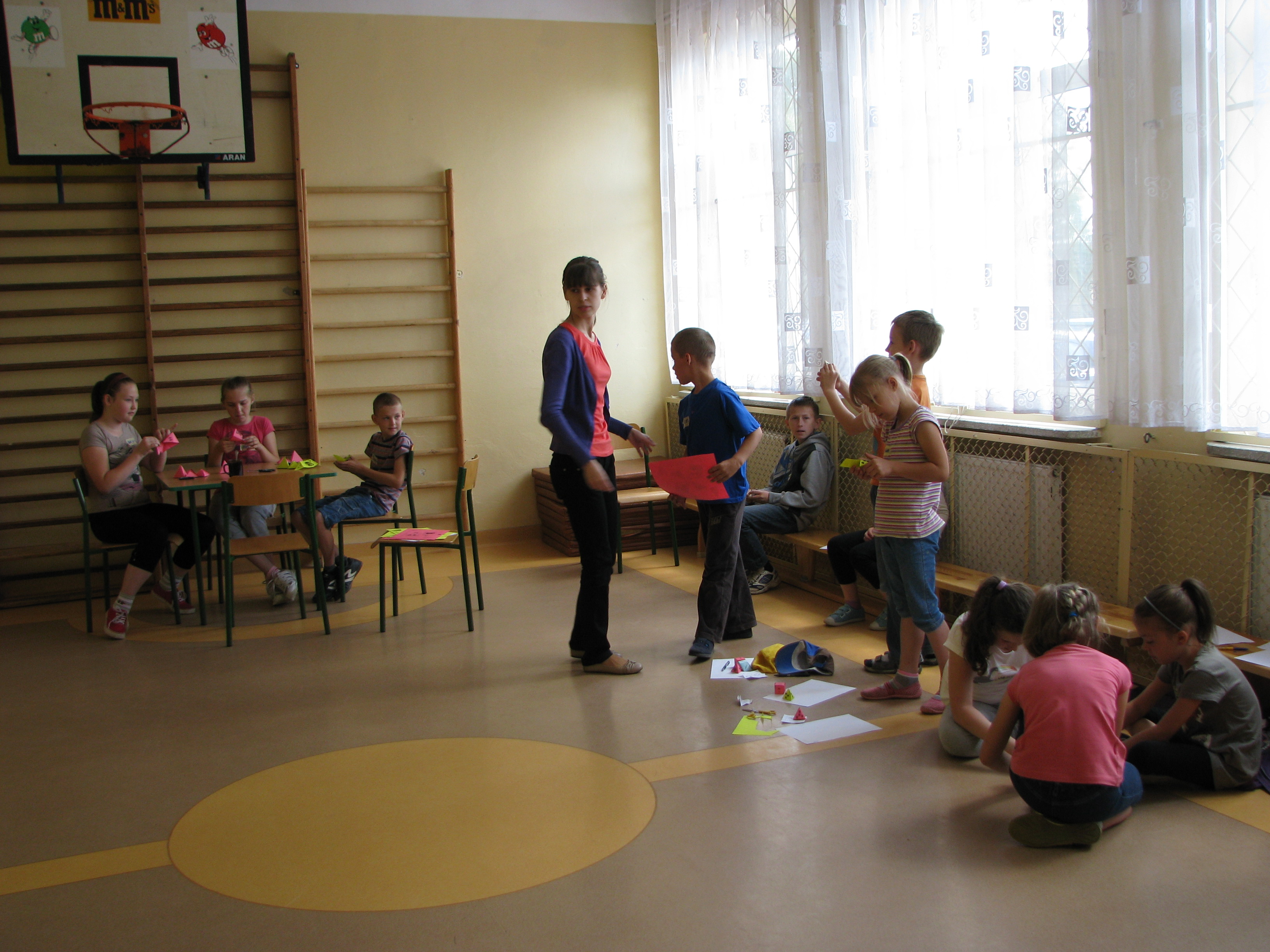 Tematem Letniska, które trwa 10 dni, jest "Bawiąc - uczyć, ucząc - bawić". Uczestnikami dzisiejszych warsztatów były dzieci i młodzież w wieku od 6 do 16 lat z terenu Gminy Wodynie. Zajęcia prowadzone były dla trzech grup wiekowych: 6-9 lat (podstawówka młodsi), 10-13 lat (podstawówka starsi) oraz 13-16 lat (gimnazjum). Najmłodsi poprzez gry i zabawy matematyczne odkrywali różne figury geometryczne, własności liczb oraz poznali magiczną wstęgę Mobiusa. Grupa starsza zajmowała się wycinaniem i składaniem brył oraz poznawaniem ich własności. Najstarsi natomiast, przypomnieli sobie systemy liczbowe i zapoznali się z niektórymi pojęciami teorii gier.