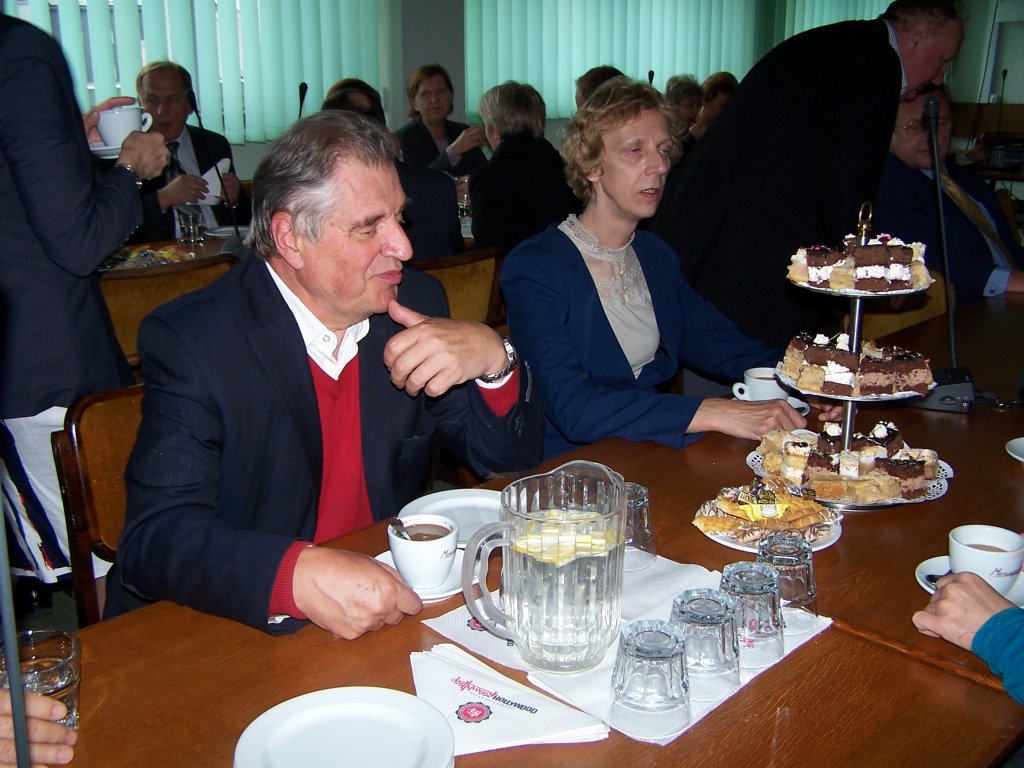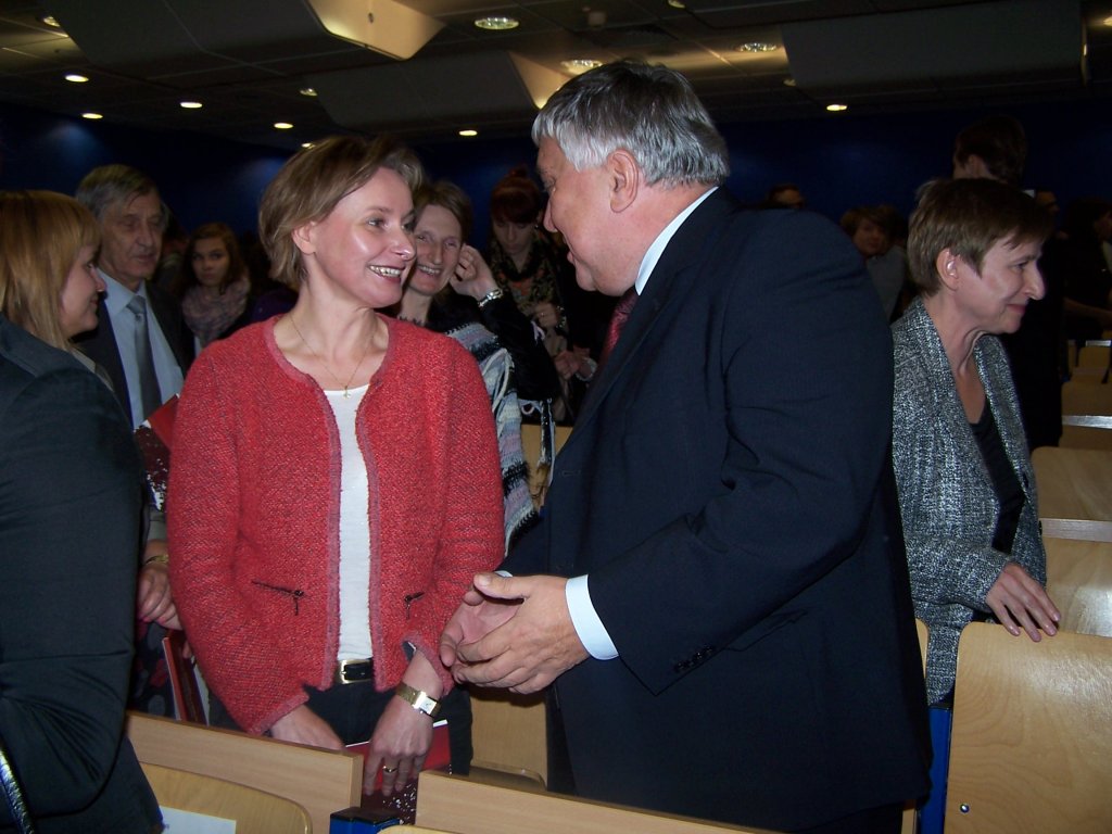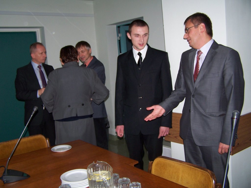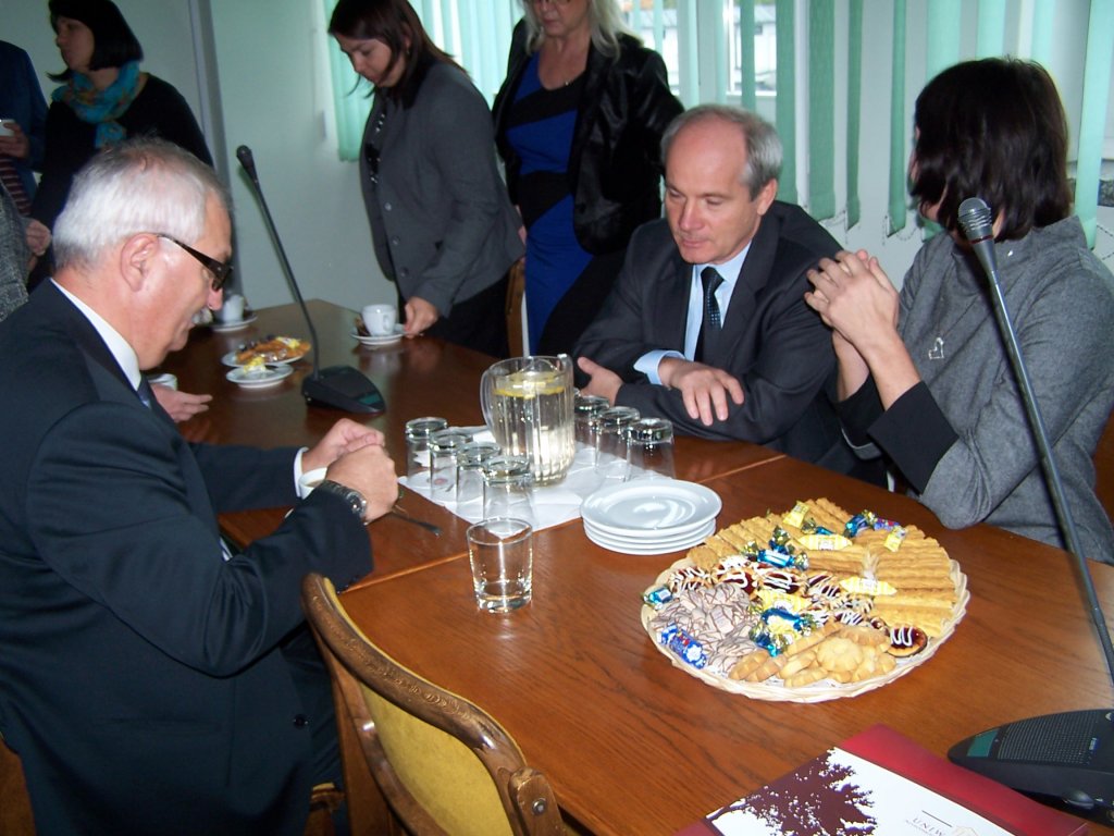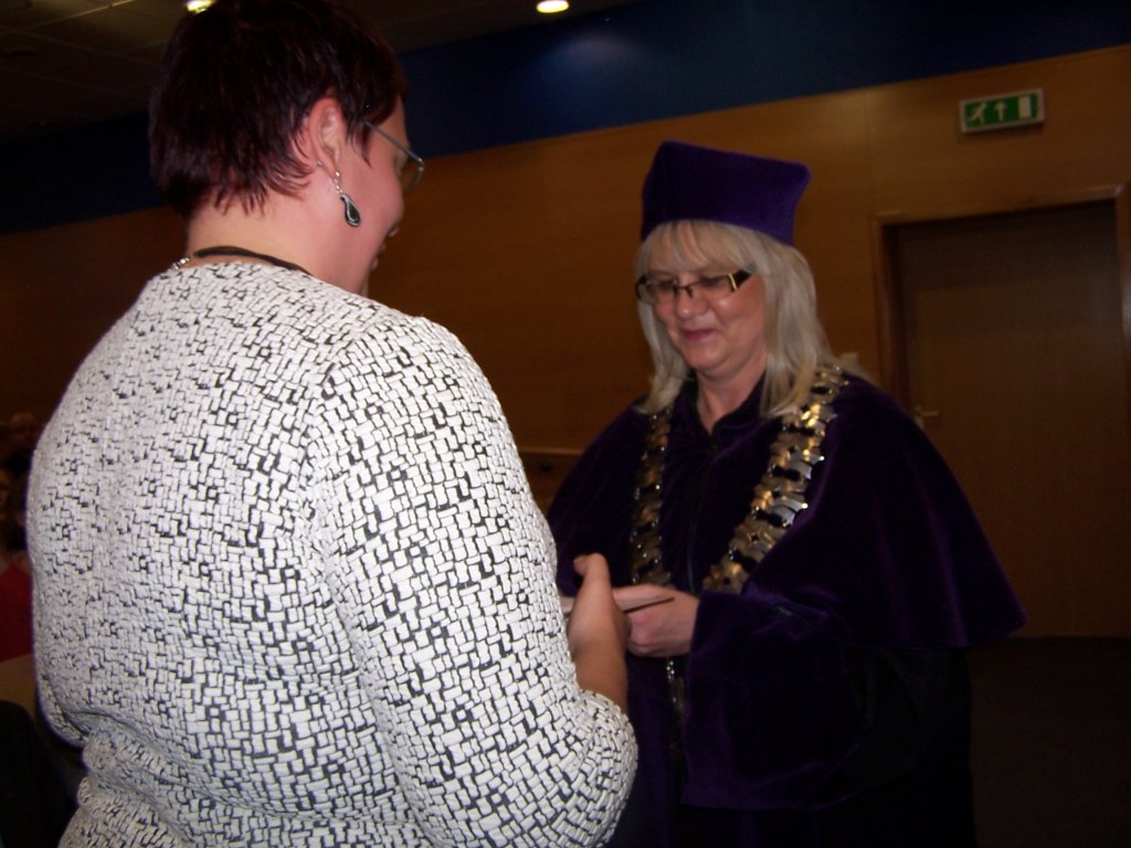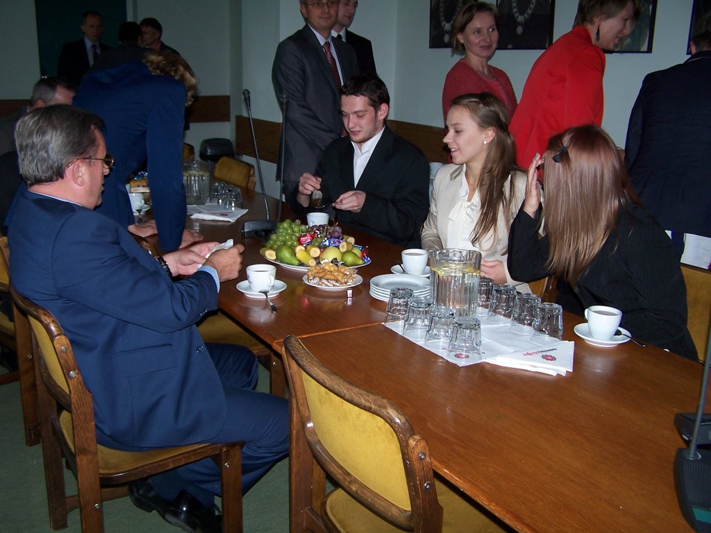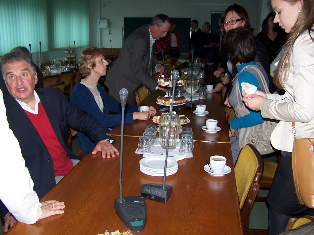 Po uroczystości Pani Dziekan prof. nzw. dr hab. Wiesława Barszczewska zaprosiła wszystkich obecnych na okolicznościowe spotkanie przy ciastku i kawie, gdzie studenci i pracownicy długo prowadzili rozmowy w miłym towarzystwie.