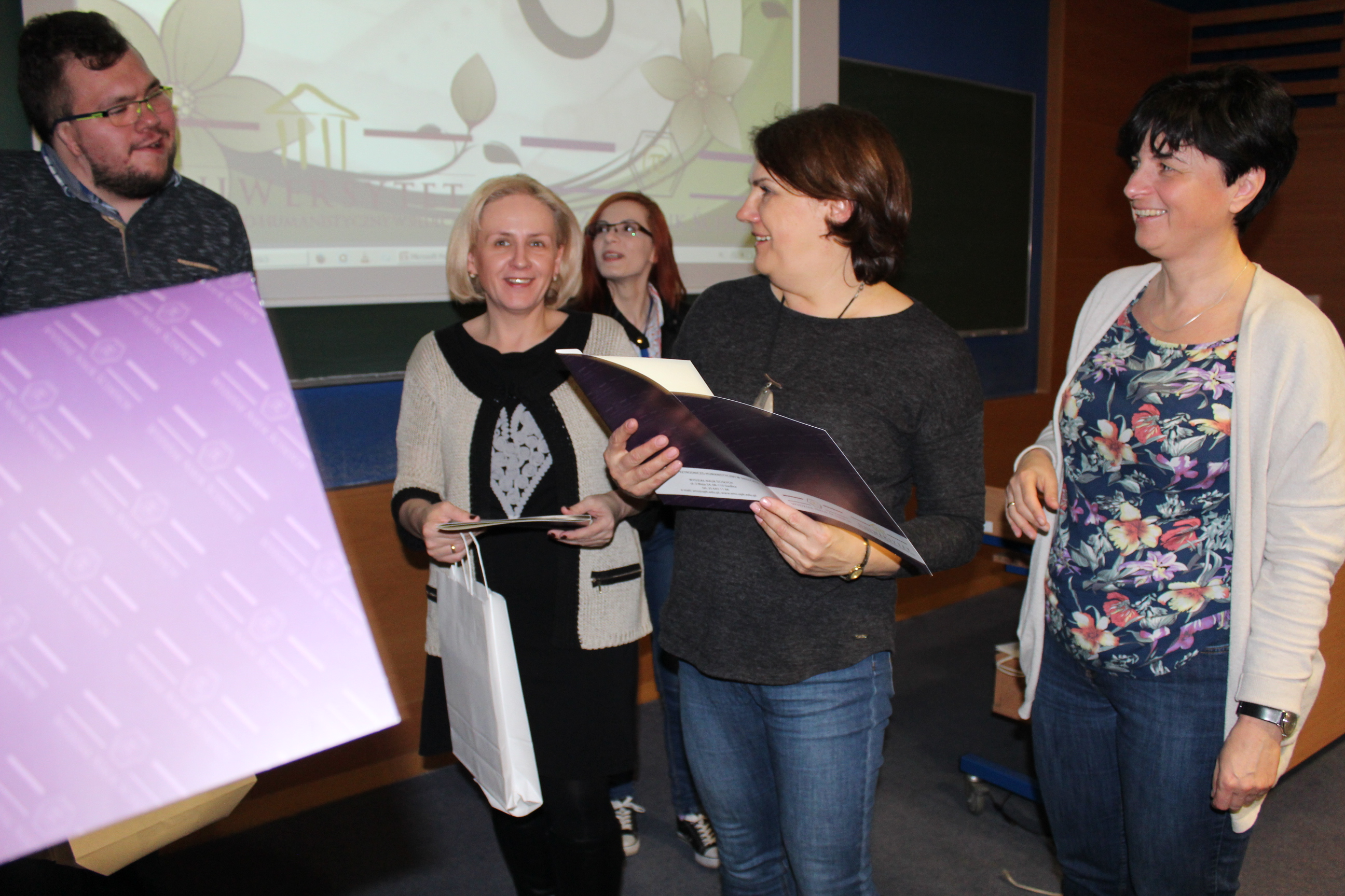 Następnie nauczyciele – przedstawiciele szkól odebrali „certyfikaty wagarowicza” na pamiątkę udziału w spotkaniu oraz upominki reklamowe Wydziału.