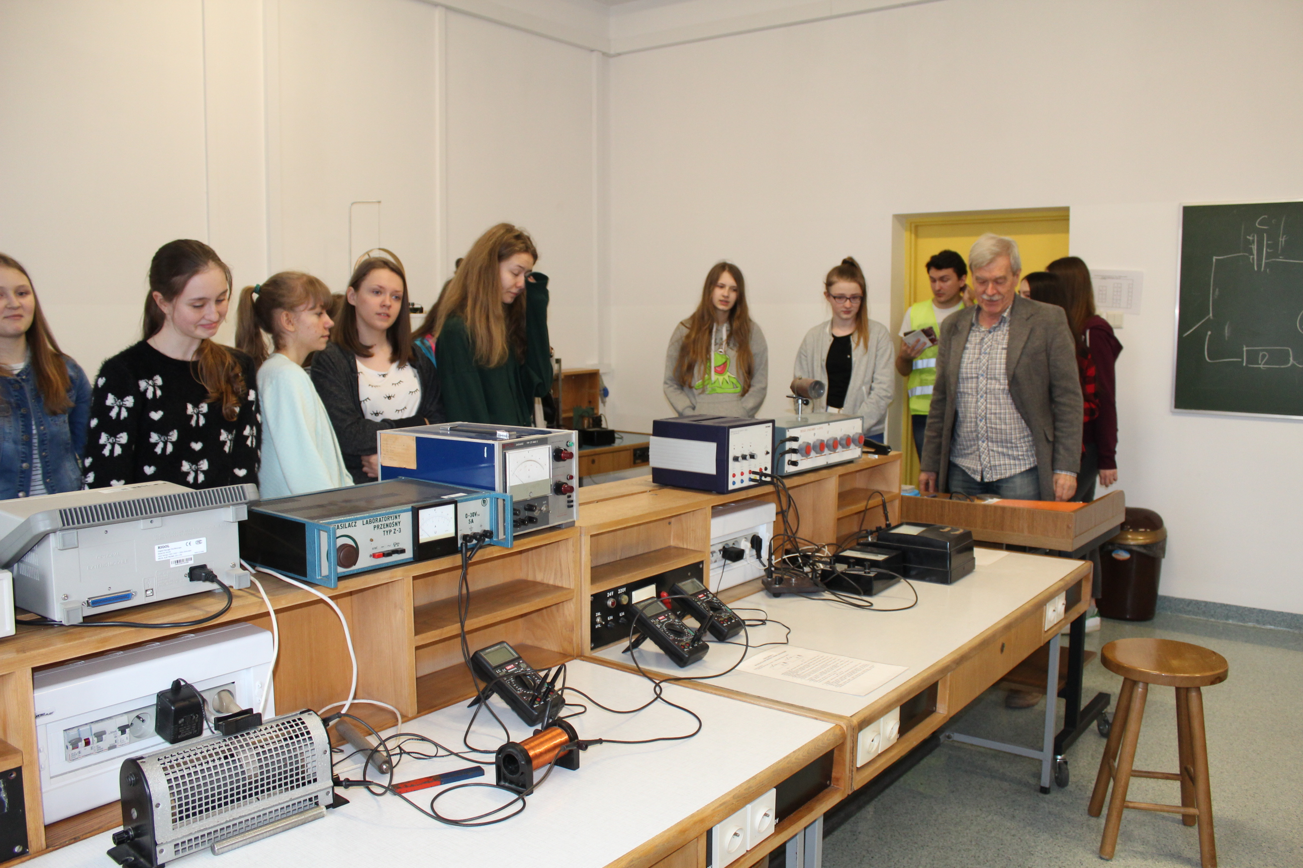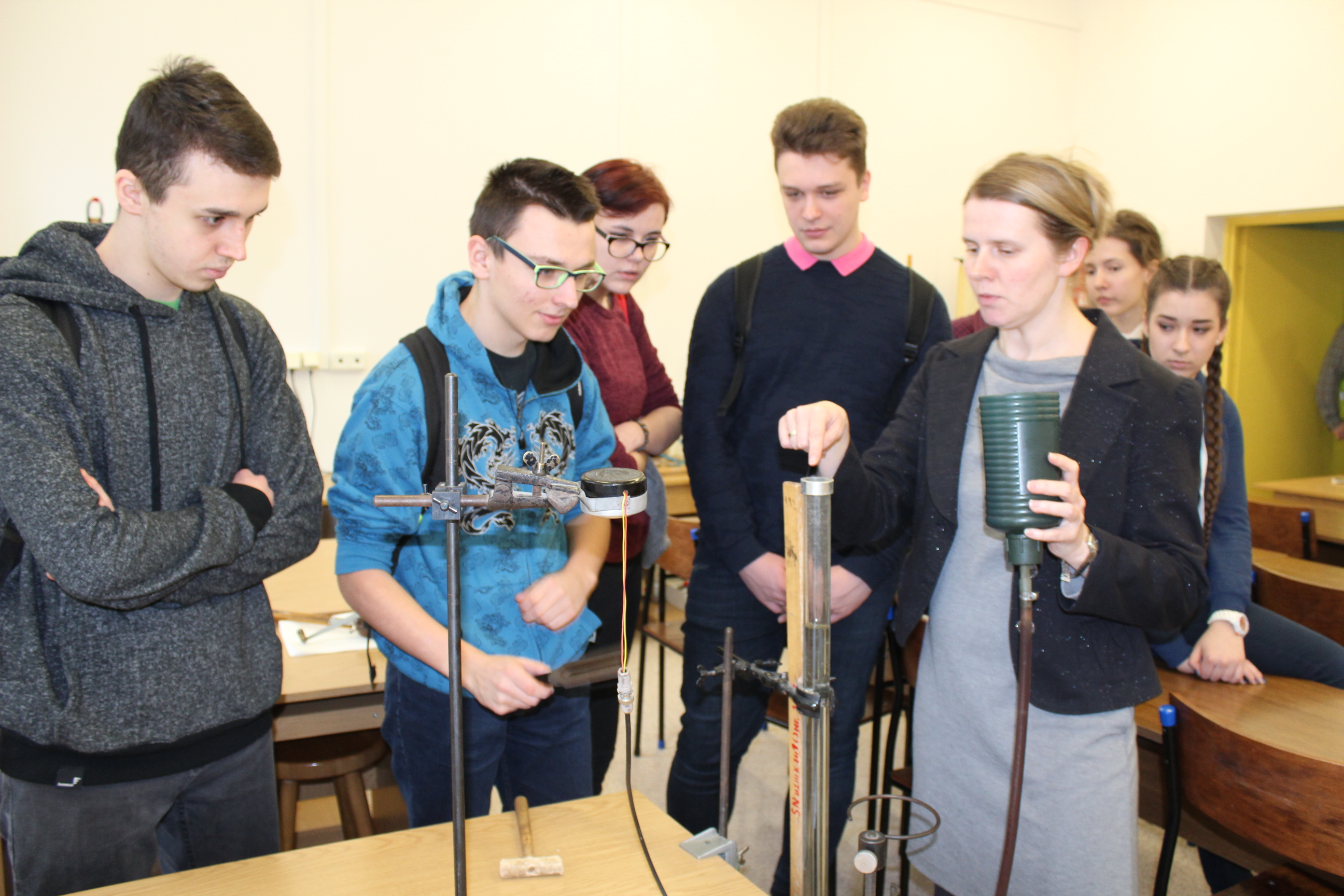 - Pokazy fizyczne. Mechanika i ciepło. pokazane były proste eksperymenty fizyczne, dodatkowo uczniowie zwiedzali laboratorium elektroniki i elektryczności oraz optyki. Wysłuchali ciekawych opowieści dotyczące tych działów fizyki i uczestniczyli w super doświadczeniach.
